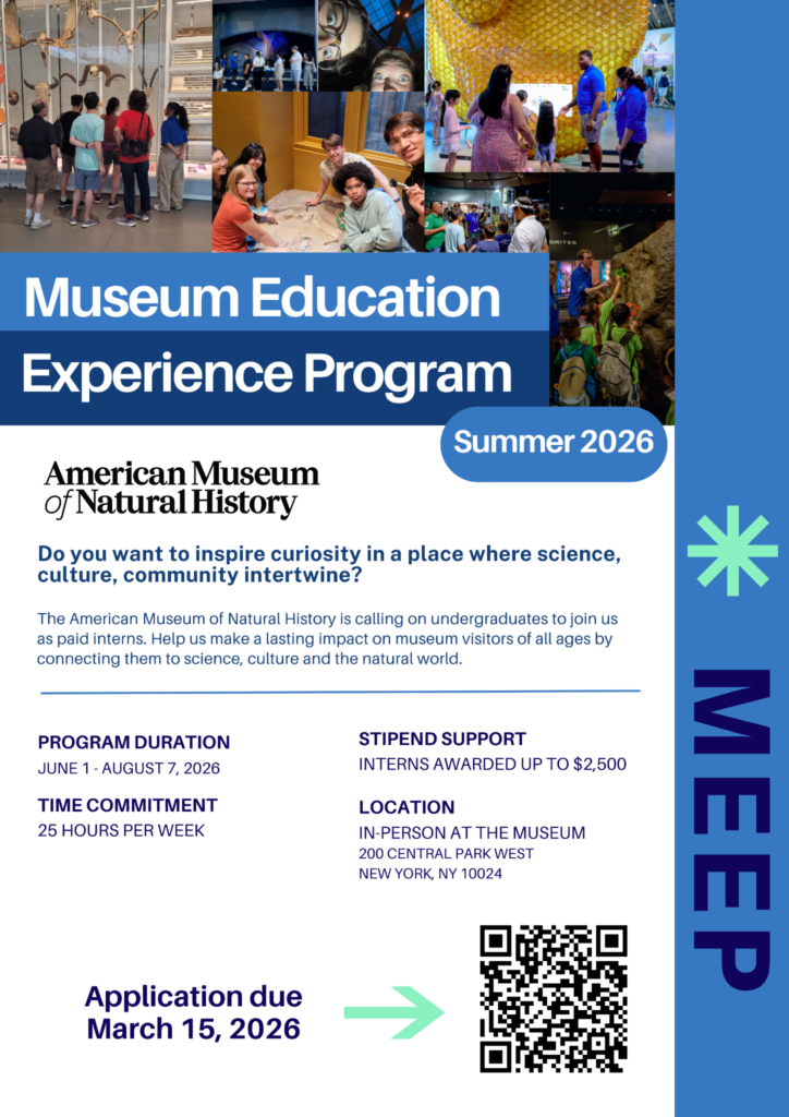 Below is information about the Museum Education Experience Program’s (MEEP’s) summer 2026 application. The deadline to apply is Sunday, March 15th at 11:59 P.M.