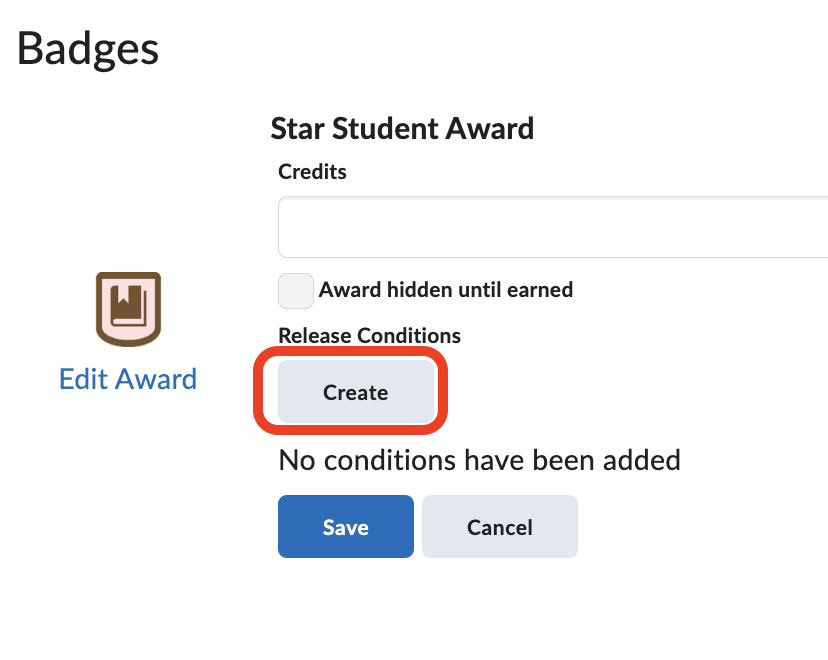 Note: You can add multiple release conditions to a single badge. When more than one condition is set, you can choose whether all conditions must be met or any one condition can be met for the badge to be awarded.