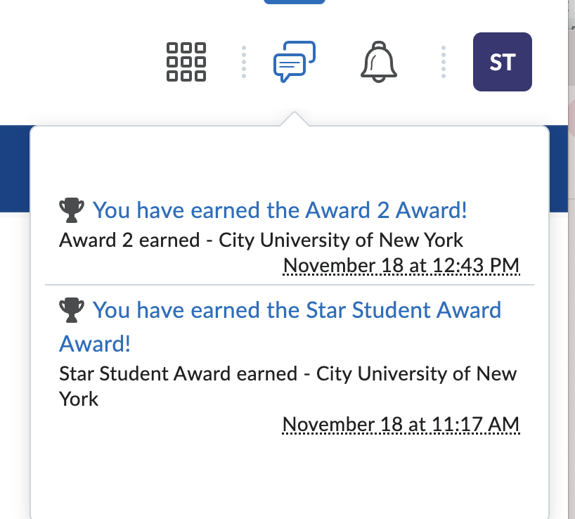 On the Awards page, students will see: