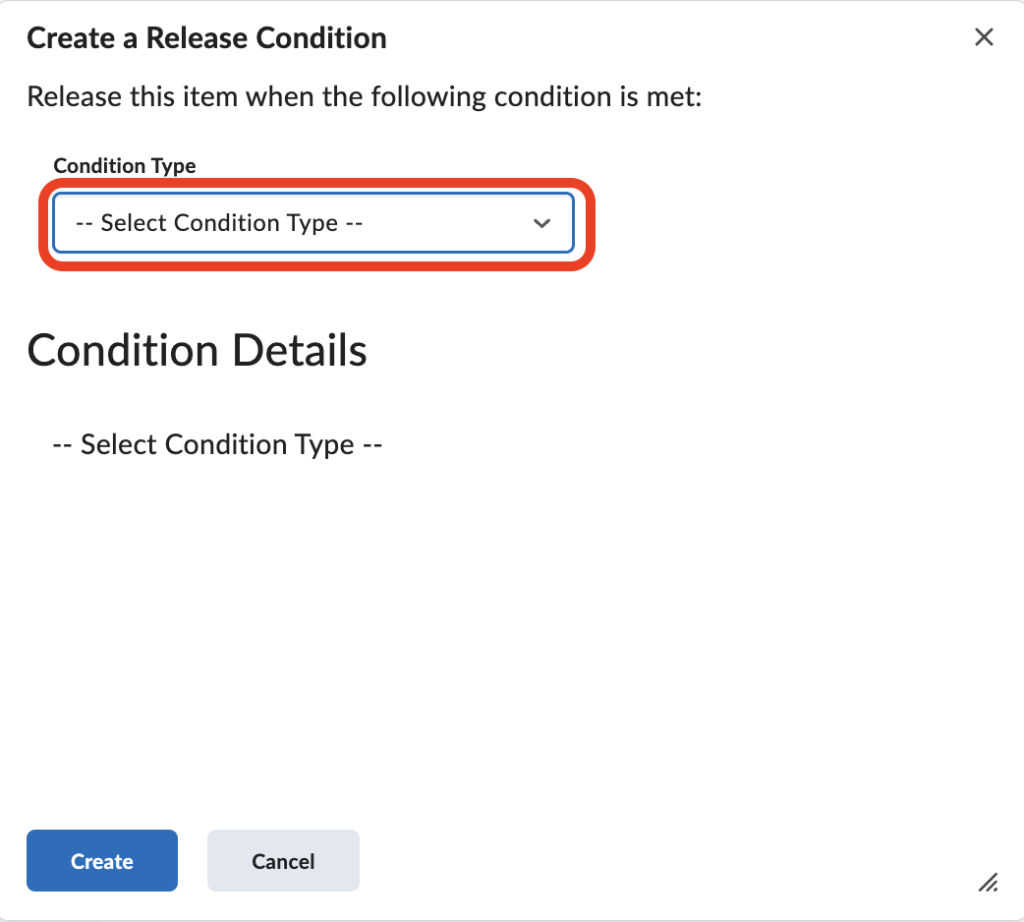 - Under Release Conditions, select Create.