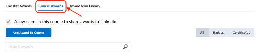 - On the Awards page, select the Course Awards tab